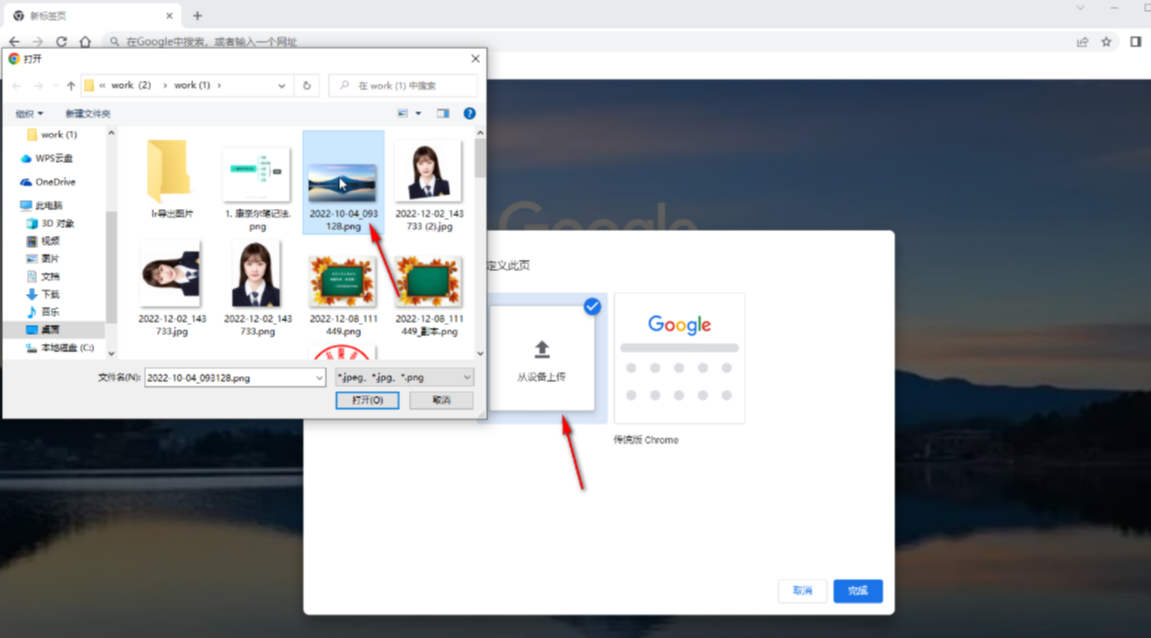 第三步:点击“从设备上传”后,在打开的窗口中浏览找到需要的图片,双击打开就可以了,如下图所示。