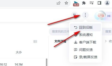 6. 如果在百度网盘中我们发现“Global Speed插件”无法使用,我们可以选择回到百度网盘的首页,然后点击打开三个竖点图标,接着在下拉列表中点击“回到旧版”选项,接着就能正常使用Global Speed插件进行视频倍速观看了(如图所示)。