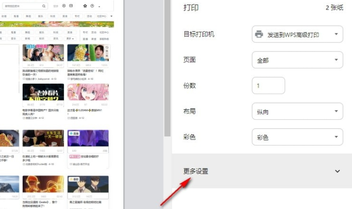 4、第四步,进入谷歌浏览器的打印设置页面之后,我们在该页面中找到“更多设置”选项,点击打开该选项(如图所示)。